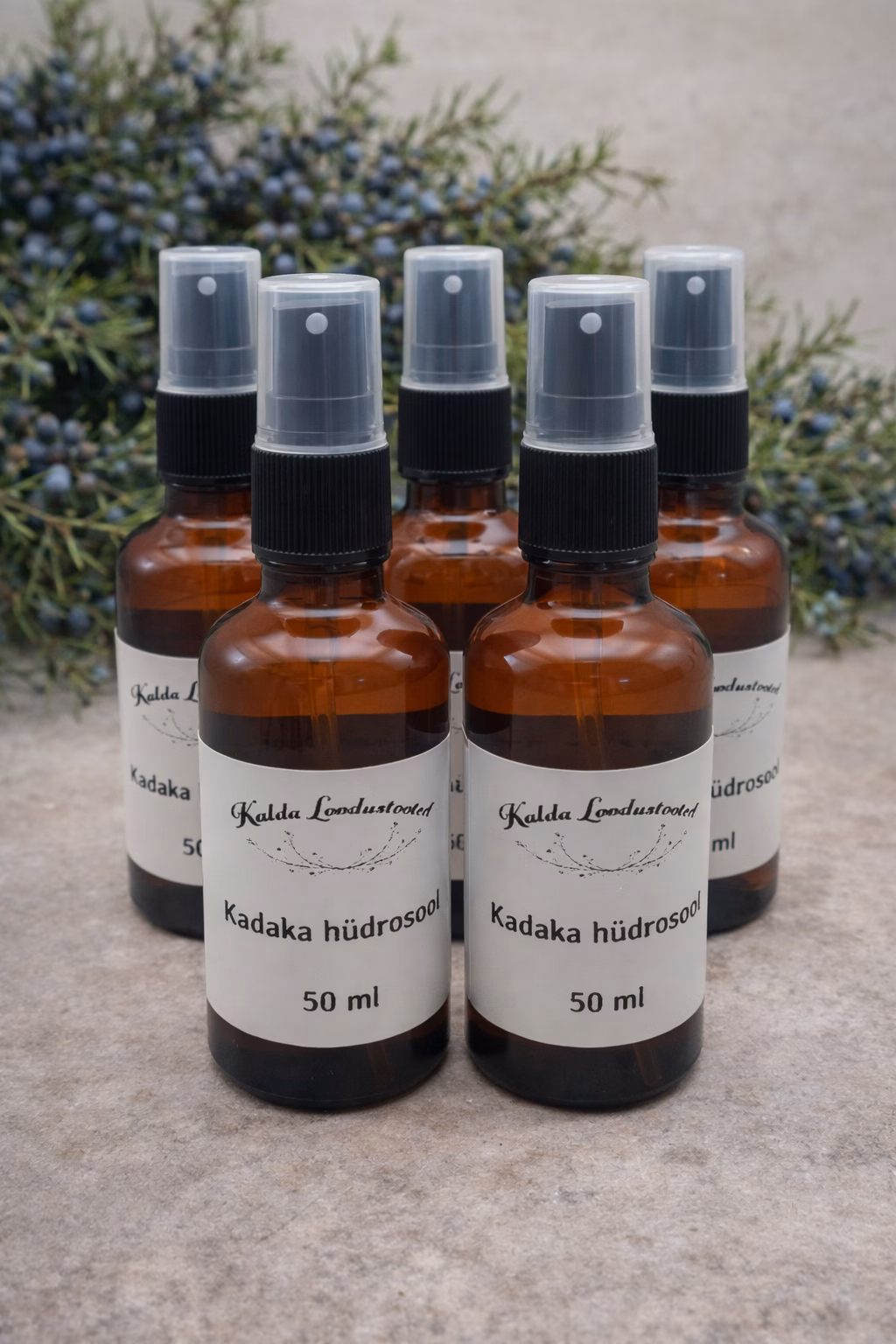 Koostisosad: Juniperus communis needles, twigs, berries, water (värsked hariliku kadaka okkad ja marjad)